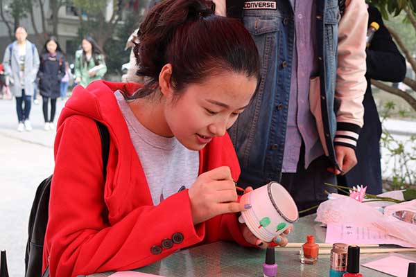 动动你的手指,DIY你的梦想。3月7日中午,我院在仙林校区中苑外场开展了“指尖上的温柔梦”女生节创意DIY活动。同学们利用回收而来的废旧指甲油和陶瓶、筷子之类的原始工艺品,进行指甲油手绘DIY工艺品的创作。 活动现场趣味横生,不仅吸引了大量女生,还有不少男生前来参与。现场准备的指甲油、陶瓷瓶、筷子、卡纸等DIY工具精致诱人,心灵手巧的同学们纷纷参与进来亲手制作工艺品,送给自己或别人一份用心的女生节礼物。另外,筷子...