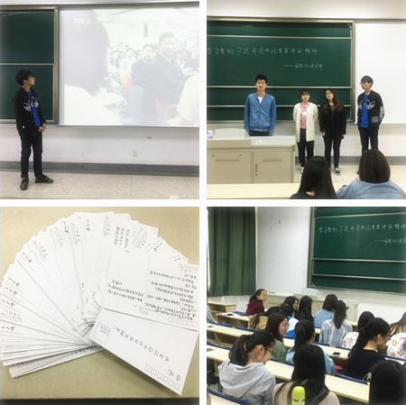 5月9日上午,我院国贸1503班团支部在仙林校区经济学科楼113教室开展了以“学习总书记重要讲话,内观当代青年成长”为主题的团日活动。 活动中,团支部成员关雨生、张杰瑞、马远、蒋如玉同学为大家们表演了小品《真传》。该小品由蒋如玉等同学原创,将习总书记所关注的“青年修为成长”的重要思想融入其中,与关雨生等同学一起自编自导,经过多次排练,呈现给整个班级团支部。《真传》讲述了一个性格孤僻、家庭贫困的男同学在班长和...