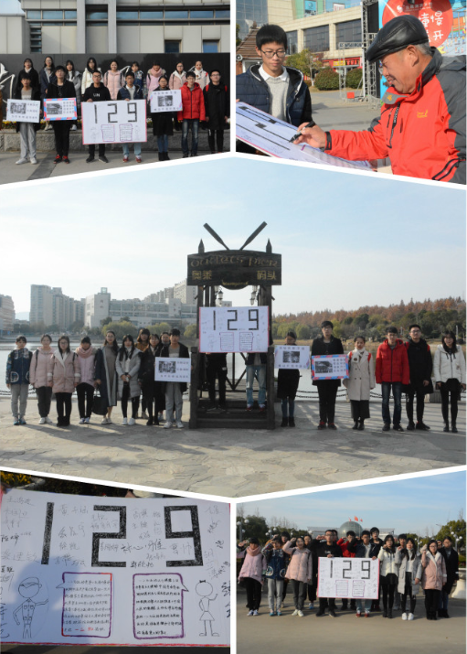 12月8日上午,伟德国际victor·1946源自的志愿者们一行20人在我校仙林校区附近举办了“传承一二·九、跨越青春”活动。活动中,志愿者们举着亲手制作的写有“一二·九运动”简介文字和历史图片的展板以及标语,从bv1946伟德南门出发,途经南师,再从大成绕回南邮抵达南财北门。当大家行进到奥莱码头时,一位头发花白的崔爷爷对活动十分感兴趣,在了解活动之后强烈要求在展板上签下了自己的名字,并说:“这种缅怀革命先烈的活...