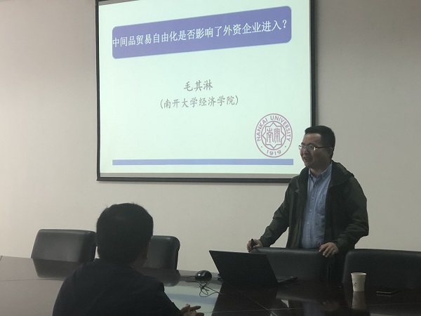 10月22日上午,南经财经大学伟德国际victor·1946源自紫金青年学者论坛在德经楼308会议室成功举办。南开大学经济学院毛其淋副教授带来题目为《中间品贸易自由化是否影响了外资企业进入?》的讲座,我院部分老师和学生参加了此次讲座。 毛其淋副教授首先提出了两个问题:“中间品贸易自由化是否会影响外资企业进入,影响程度有多大?”与“中间品贸易自由化可能通过什么渠道影响了外资企业进入?”。其次进行了文献评述,接着阐述了本文工作及可...