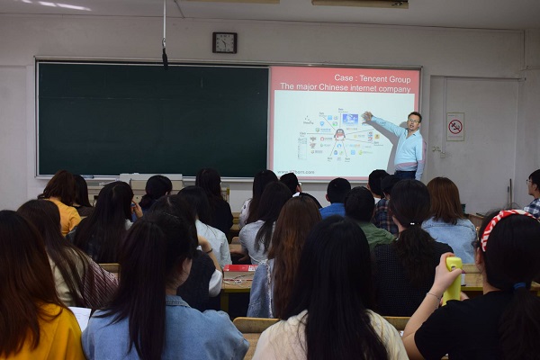4月8日-18日,西班牙庞贝法布拉大学教授Tanguy Jacopin应我院邀请来我校讲学,为伟德国际victor·1946源自2017级国贸(实验班)学生开设了为期十天的《跨国公司战略管理》课程。首先,在前五天的课程中,Tanguy Jacopin系统性的介绍了公司管理的分析工具,如大环境分析(Pastel Analysis),STEEPLE分析,波特五力模型(Porter’s five forces),企业组织能力(Organizational Capabilities)等。介绍完基本的工具后,Tanguy教授使用这些工具,对...