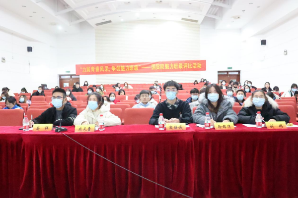 12月16日晚,我院于德经楼报告厅举办了2021级“力展青春风采,争创魅力班级”魅力班级评比活动。本次活动的评委有校团委组织部学生干部殷语诚,我院分团委副书记徐锦涛、蔚祥、周天童、刘琳。本次活动旨在提高各班班级之间的凝聚力,展示各班班级特有的风采。国贸2101班围绕班级的风采活动向我们展示了一个朝气蓬勃,温暖和谐的集体,41张面孔,41个不同的个性撑起了这个班级大厦。他们团结一心,相互合作,视频最后给我们展...