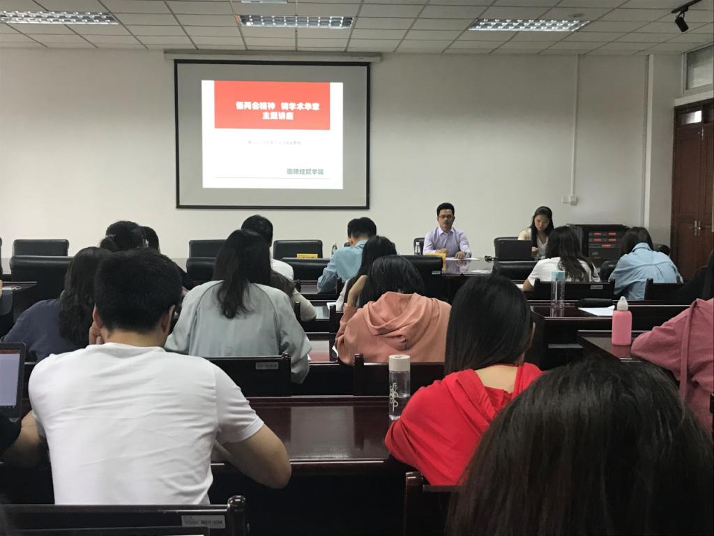 首先陈云云副教授从介绍两会历史出发,阐述了今年两会的胜利召开对于坚定中国信心、凝聚奋斗力量的重要意义,并解读了高校思政、学术不端等关于教育的两会热点问题,重点讲述了机遇与挑战并存的现实局面。其次,他鼓励研究生同学多关注时事政治,自觉担负起实现中华民族伟大复兴的历史使命,成为高校与时俱进的先进人才。最后,陈云云副教授从自身学术创作过程出发,从学术态度、学术研究本质、论文写作、投稿等方面分享了他的经验。