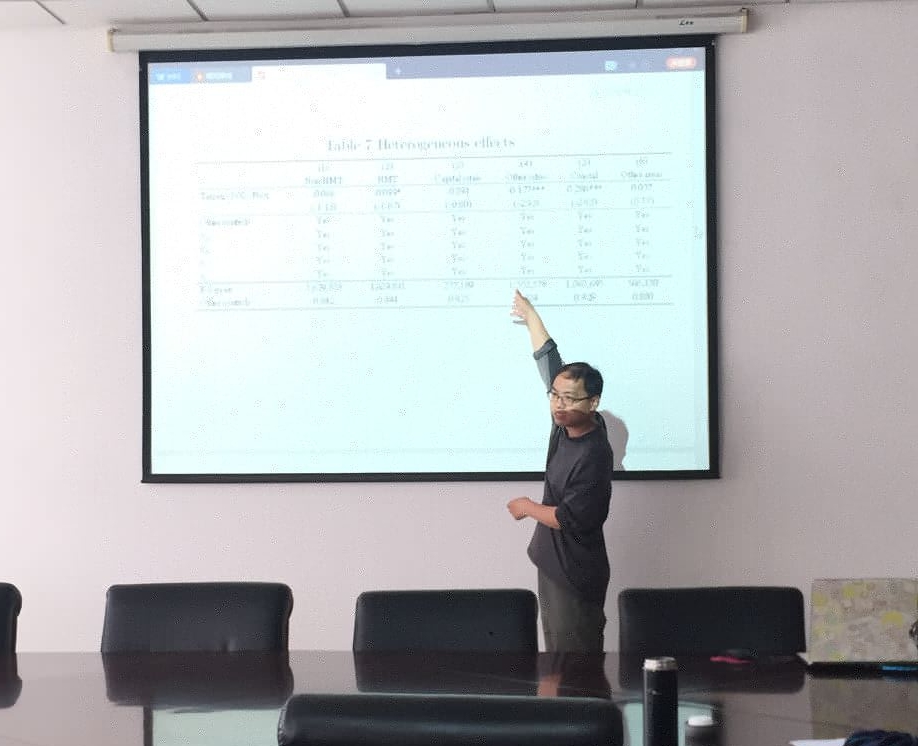 4月30日下午,应我院邀请,中央财经大学伟德国际victor·1946源自林发勤副教授在德经楼308会议室作了题为Environmental regulation and inward foreign direct investment: Evidence from the eleventh Five-Year Plan in China(环境规制与外商直接投资:来自中国“十一五”规划的证据)的讲座。我院部分老师和研究生聆听了此次学术讲座。