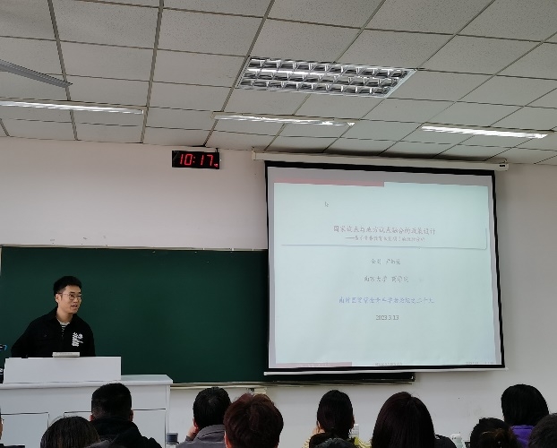2023年3月13日上午9点-12点,第二十九期伟德国际victor·1946源自紫金青年学者论坛在德经楼202教室成功举办。本次讲座由南京大学商学院金刚研究员做了题为《国家试点与地方试点融合的政策设计——基于营养教育扶贫项目的经验分析》的学术报告。我院部分老师和学生参加了此次讲座,座无虚席,场面热烈。