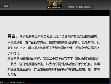 在互动环节,在线师生积极提问,就商业业态演进与新动态、商业模式创新、商业制度文献前沿、定制化与商业组织创新等方面的相关问题进行交流,蔡文浩教授结合自身教学科研经历、国内外商业实践进展与研究思考进行了有针对性的具体回应。