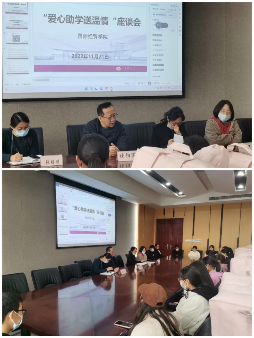为进一步做好学生的关爱、教育和引领工作,11月21日中午,我院在德经楼308会议室组织开展“爱心助学送温情”座谈会。学院党委书记张阳军、党委副书记季霞、2022级辅导员张朋朋、刘紫月以及部分新生代表参与了此次座谈会。