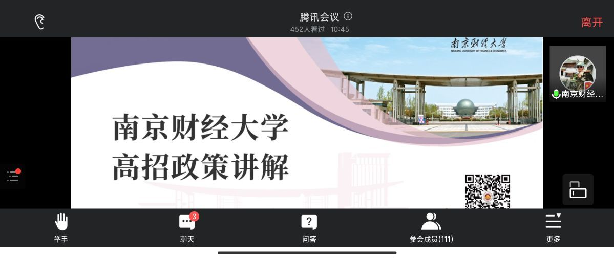 今年是学院承接省外招生的第一年,通过校友的支持,参加“江苏好大学”天津联合招生宣传联盟,联盟的高校分别是南京大学、东南大学、南京师范大学、bv1946伟德等13所高校,6月15日通过腾讯会议举行网络直播宣讲,吸引了大量的天津地区学生和家长参与。