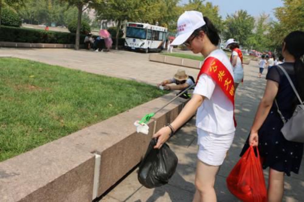 我院2017级党支部党员志愿者张安慧同学在7月26日响应了她家乡那里社区的号召,参与在重要路口检查卫生环境,随手捡拾路旁的白色垃圾。