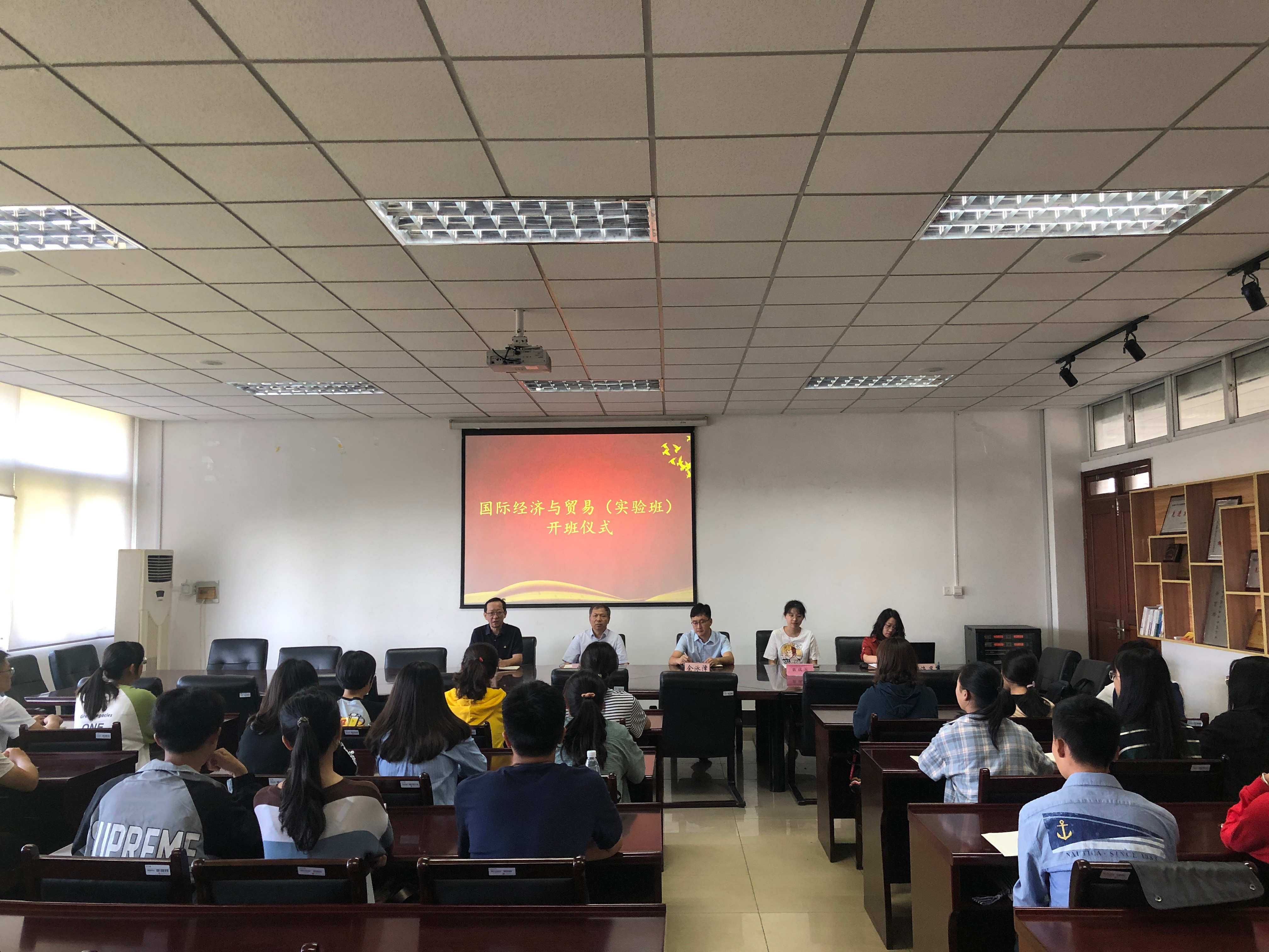 9月23日上午,2019级国际经济与贸易专业实验班开班仪式在仙林校区德经楼308会议室成功举办。参加会议的有,学院党委书记张阳军,院长宣烨,副院长余永泽,国实1601班学姐代表袁成玉,教学秘书董老师,辅导员茆老师和2019级国贸实验班新生。