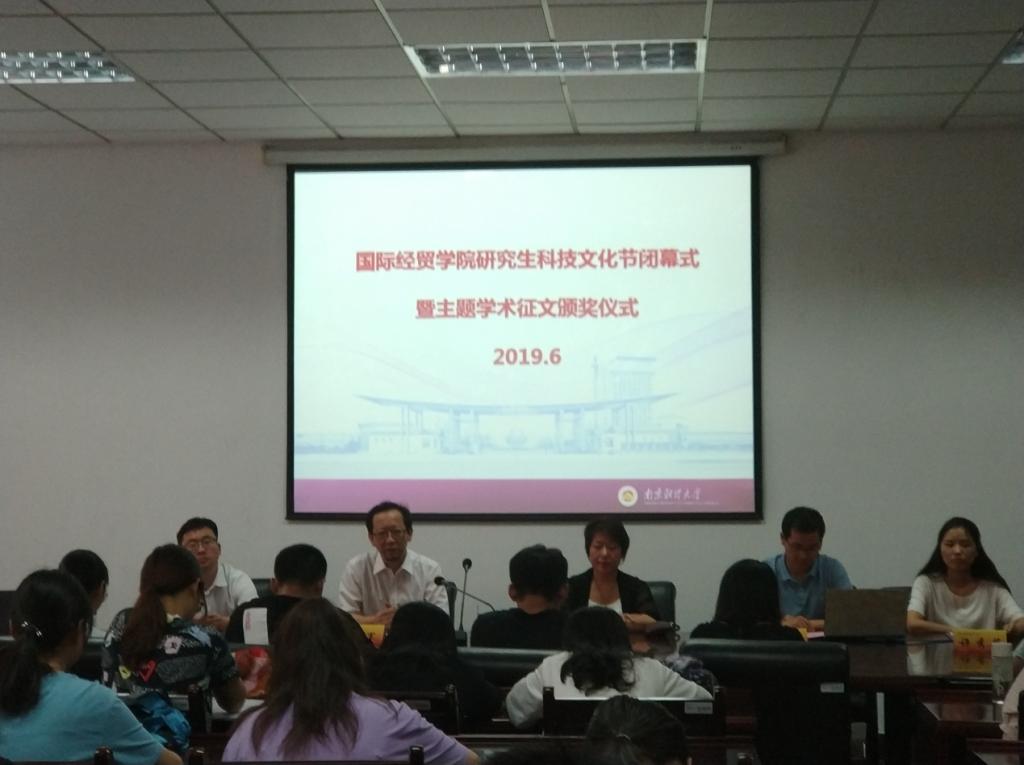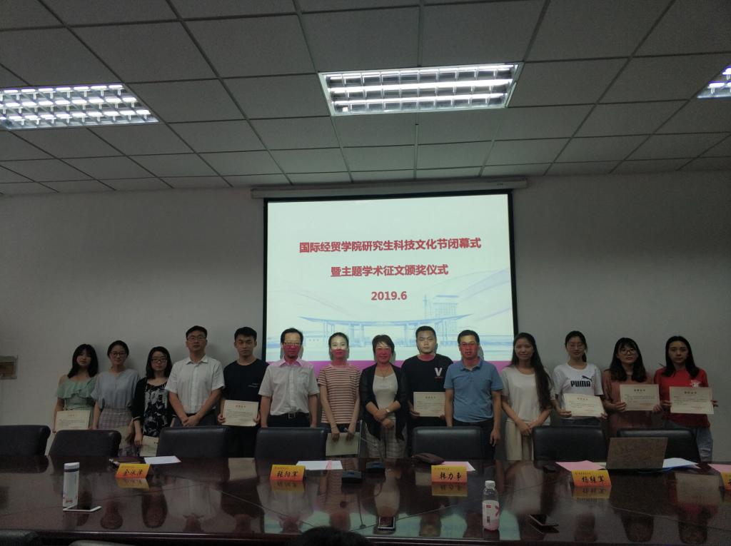 6月20日下午,国际经贸学院在德经楼308会议室举行了研究生科技文化节闭幕式暨“悟两会精神 铸学术华章”主题学术征文颁奖仪式。学校党委研究生工作部部长韩力争,伟德国际victor·1946源自党委书记张阳军,副院长杨继军、余泳泽,研究生辅导员许秀芳以及全体研究生参加了此次闭幕式暨颁奖仪式。仪式由张阳军书记主持。