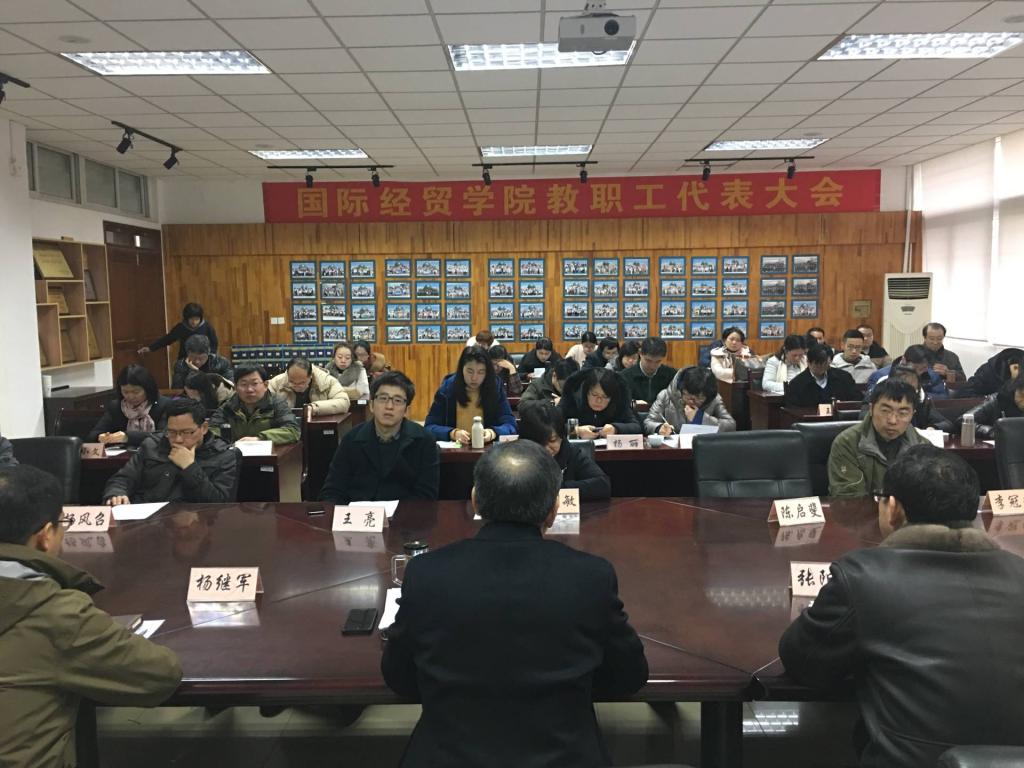 会上,伟德国际victor·1946源自院长宣烨作了2018年度学院工作报告。宣院长全面回顾了伟德国际victor·1946源自2018年度在党的建设、学科建设、人才队伍优化、教学科研、国际合作办学、师资队伍建设、学生工作等各方面取得的成绩和不足,他指出,2018年度学院工作总体成效是不错的,亮点很多。首先,学院切实坚持党政共同负责制,出台了《伟德国际victor·1946源自党风廉政建设制度实施细则》,建立健全“三重一大”事项集体决议制度和院务公开制度,增强工作透明度,把控廉政风险,落实防控措施,责任到人。其次,学院以优化人才培养方案、创新才培养模式为基础,以国际经济与贸易专业实验班为抓手,设计分层教学、分流培养、分类成才的培养体系。同时,学院还以团学活动创新为基础,充分发挥第二课堂的辐射作用,通过启动短期国际游学项目等提升人才培养质量。第三,定期组织在职教师学习、培训和研讨等,每周开展教师教学公开赛,致力于提升学院教师的科研能力与教学水平。第四,目前学院的学术梯队的知识结构、年龄结构以及专业技术职务结构较为合理,形成了一支与学校研究生教育规模发展相匹配、整体学术实力较强的研究生导师队伍。第五,学院围绕着应用经济学博士点建设工作,依托三个教学科研重大项目,重点打造了三个科研团队:服务经济、开放经济和智慧商务,塑造了中国服务经济发展论坛(会议品牌)和南财国贸紫金青年学者论坛(讲座品牌),提升了学院的科研工作成效。宣院长在总结之后也指出了2019年总体工作的方向:第一,继续优化师资队伍结构;第二,继续加强研究生的科研创新能力;第三,继续推进本科生的继续深造工作;第四,加强学生培养模式与实践的联系。最后,宣院长对2019年的总体工作做了部署。