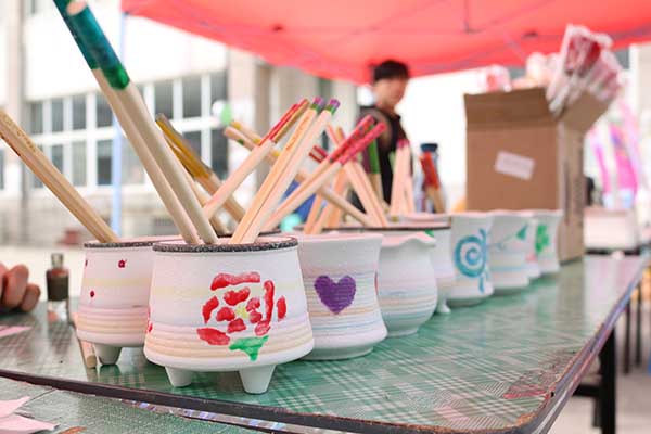动动你的手指,DIY你的梦想。3月7日中午,我院在仙林校区中苑外场开展了“指尖上的温柔梦”女生节创意DIY活动。同学们利用回收而来的废旧指甲油和陶瓶、筷子之类的原始工艺品,进行指甲油手绘DIY工艺品的创作。