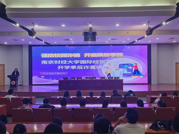 最后,为了树立新生反诈意识,保护自身利益。学院邀请了08级校友、中国工商银行南京仙林大道支行行长李小妹为同学们带来了一场“谨防校园诈骗,开启缤纷学程”的主题讲座。
