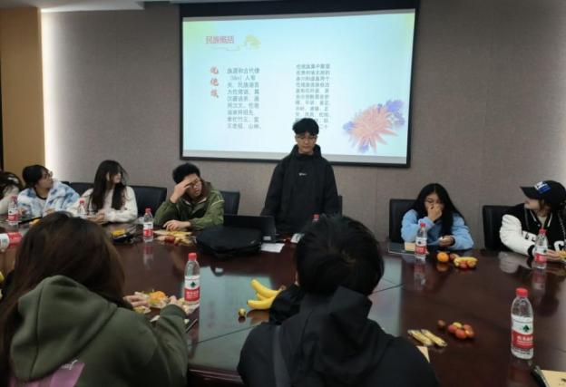 分享会上,来自贵州的学生陆鑫垚分享了他的家乡文化。他从民族概况、民族故事、民族文化和民族发展四个方面介绍了仡佬族来历和风俗习惯,并表示在党和国家的领导下,少数民族族人享受着诸多优惠政策,休养生息,成为中华民族不可分割的一部分,齐心协力,共同为了中国伟大的复兴之路而奋斗。来自福建的畲族女孩钟子娴,分别从文化起源、服装头饰、风俗节日、文化传播等四个方面介绍畲族的特色文化。壮族同学蒙佳瑶感悟到:“感觉畲族的‘三月三’和壮族的该节日有异曲同工之妙,两族人民都是能歌善舞的同胞,有机会一定会去福建亲身感受一番。”分享会在轻松愉悦的氛围中进行。