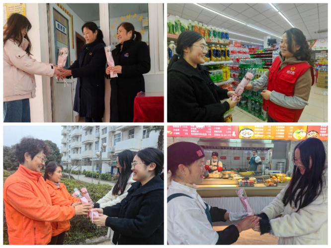 此外,伟德国际victor·1946源自的志愿者们在三八节前夕为我校女教职工送上鲜花与祝福贺卡,以表敬意。志愿者们去到了宿管站、超市与食堂,细心留意才发现,朴素的中国女性在点点生活中展现着巾帼不让须眉的美丽。食堂的阿姨们在为接下来的晚餐忙碌着、保洁阿姨仔细清扫着教室走廊的卫生,宿管阿姨们则是在倾听着来访同学们的烦恼与心事,并不时给她们提供鼓励与建议。她们在平凡岗位上默默坚守,维护了校园生活的和谐与有序。“阿姨您工作辛苦了,祝您妇女节快乐,这是为您准备的鲜花,祝您工作顺利,心想事成!”