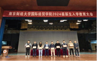 接着院长余泳泽在讲话中诠释了三个问题:为什么选南财?为什么选国贸院?为什么选这三个专业?学校好,学院强,专业精。期待同学们要心中有爱,既有对祖国的大爱,也有对学校,老师和父母的小爱;要脑中有识,不仅有专业学科知识,还有为人处事的知识;要眼里有光,坚定初衷和梦想;手中有活,要有专业实践的能力,进行创新创业活动;要腿上有劲,注重身体健康,锻炼身体,培养强健的体魄。