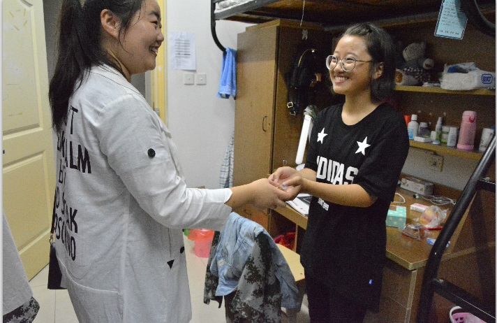 中秋节晚上,我院2016级辅导员张东霞老师和寻访月饼的学生一同走进新生宿舍,与新生们品月饼、聊军训话中秋。在看到老师和月饼时,张同学紧张地说,“真的很感谢老师和学姐学长们过来送月饼,冰皮月饼真的是好吃到哭,就和在家吃的感觉一样!”