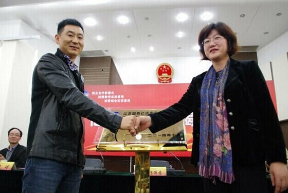 国泰亿达董事长才东升先生发言表示“早就有这样的想法,公司将致力于与大学的合作,让学生了解到社会和企业需要怎样的人才,促使高校培养出更多符合我国发展要求的实践性、创新性人才”。最后,邱伟芬副校长和国泰亿达董事长才东升先生一同为亿达工作室揭牌,并表示对双方合作愉快互进双赢的美好期望。国泰亿达公司人事主管李瑾女士为南财大亿达工作室颁发开办购置金,亿达工作室正式挂牌成立。