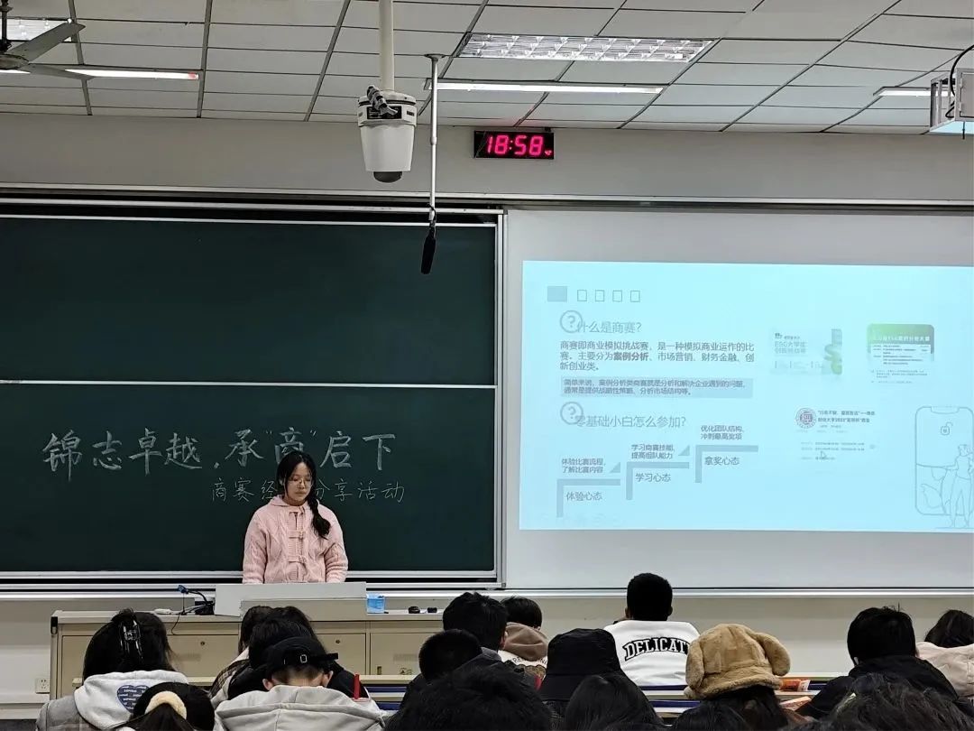 为帮助同学们了解商赛的具体内容与注意事项,为今后的商赛实操打下基础,11月11日晚,我院在德经楼101教室举行“锦志卓越 承‘商’启下”商赛经验分享会,此次活动邀请到了国贸2104班的陈雪子、王国磊同学,以及国贸2204李苏妍同学进行经验分享与技巧传授。