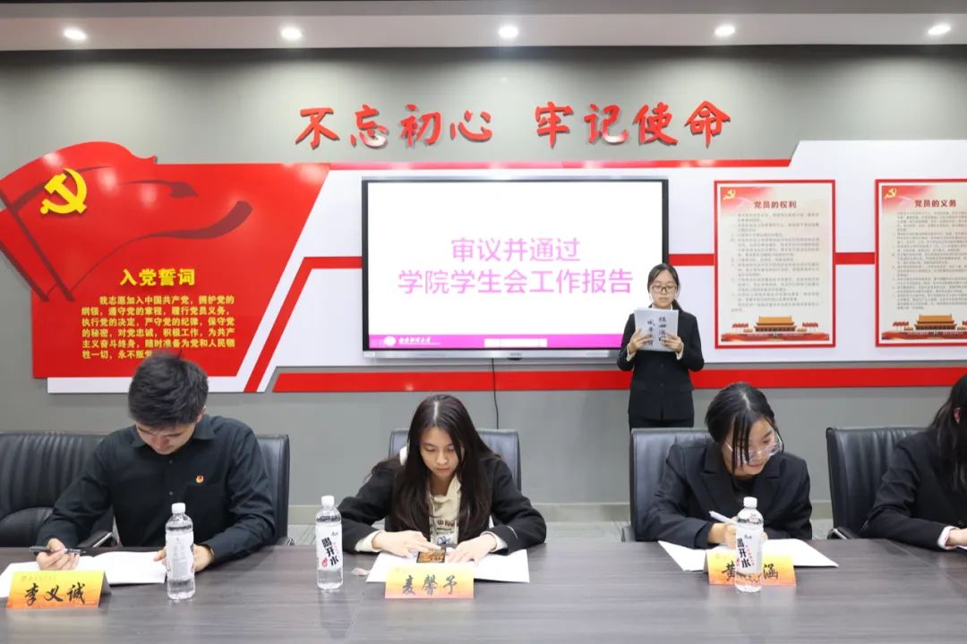 大会第一次全体会议,陈雪子同学代表我院第二十届学生会主席团做工作报告,她回顾了一年来我院学生会在学术、文体、权益等方面的工作,总结成绩,指出不足,并提出了今后的工作目标,希望进一步推动学生会工作的创新发展,更加关注同学们的需求和权益,为同学们提供更优质的服务。随后,余苗苗同学代表我院第二次学生代表大会筹委会作本次大会提案工作报告,她就教育教学、成长成才、生活服务、权益维护以及其他意见和建议五大类提案进行分类并对提案处理部分结果进行了汇报。至此,第一次全体会议结束。