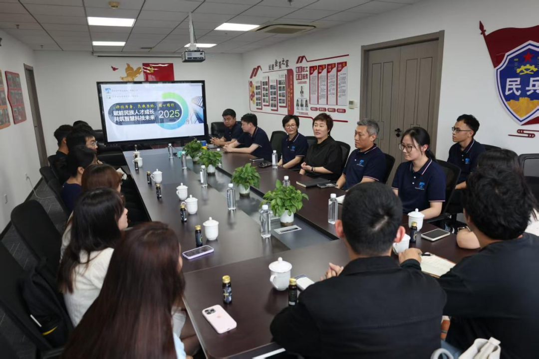 徐圆副院长介绍了学院在学科研究、人才培养、学生活动等方面的重要举措,特别提及学院在助力少数民族学生成长成才中给予的个性化辅导与帮助。她表示少数民族学生身上有着独特的文化魅力和进取精神,同时成长过程中也面临着复杂挑战和客观困境,学院始终将对他们的关怀放在重要位置。希望校企以此次参访为契机,充分发挥校企双方的人才、科技、政策、资源优势,实现校企双向奔赴,为推动民族融合增添生动注脚。