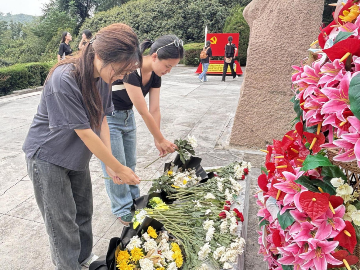 参观结束后同学们在烈士纪念碑前举行了庄重的悼念仪式,向革命烈士默哀致敬,擦拭镌刻多国烈士姓名的墓碑,瞻仰烈士名录,表达对先烈们的深切缅怀和敬仰。当聆听到“八一四”空战故事,得知中国飞行员高志航调转机头与敌机同归于尽时,同学们深受震撼。“每一个名字都是一段不能忘却的记忆。”“我们应缅怀所有国际援华航空烈士”同学们感慨道。