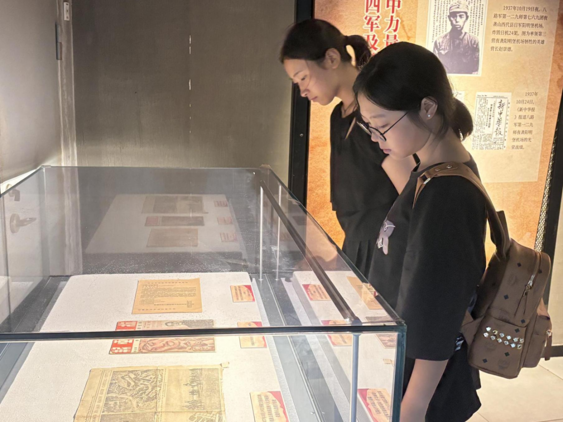图为同学们在浏览一件件文物