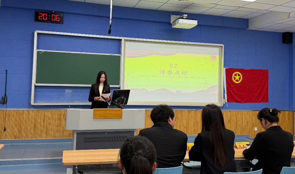 学院学生会主席程婧尧对本次团支书述职工作进行点评总结。她对大家履职以来的辛勤付出与扎实成效给予充分肯定,同时结合述职情况,梳理出工作中的提升空间与优化方向,倡导大家以此次述职为契机,复盘反思、总结经验,明确前进路径。同时,她还对全体团支书提出三点希望:一是深化理论武装,创新思想引领形式,引导团员坚定理想信念、厚植家国情怀;二是强化服务意识,坚守“三服务”导向,精准对接同学需求,提升团组织凝聚力;三是坚持守正创新,借鉴先进经验,融合专业特色与团员个性,打造支部工作亮点,为学院共青团事业发展添砖加瓦。