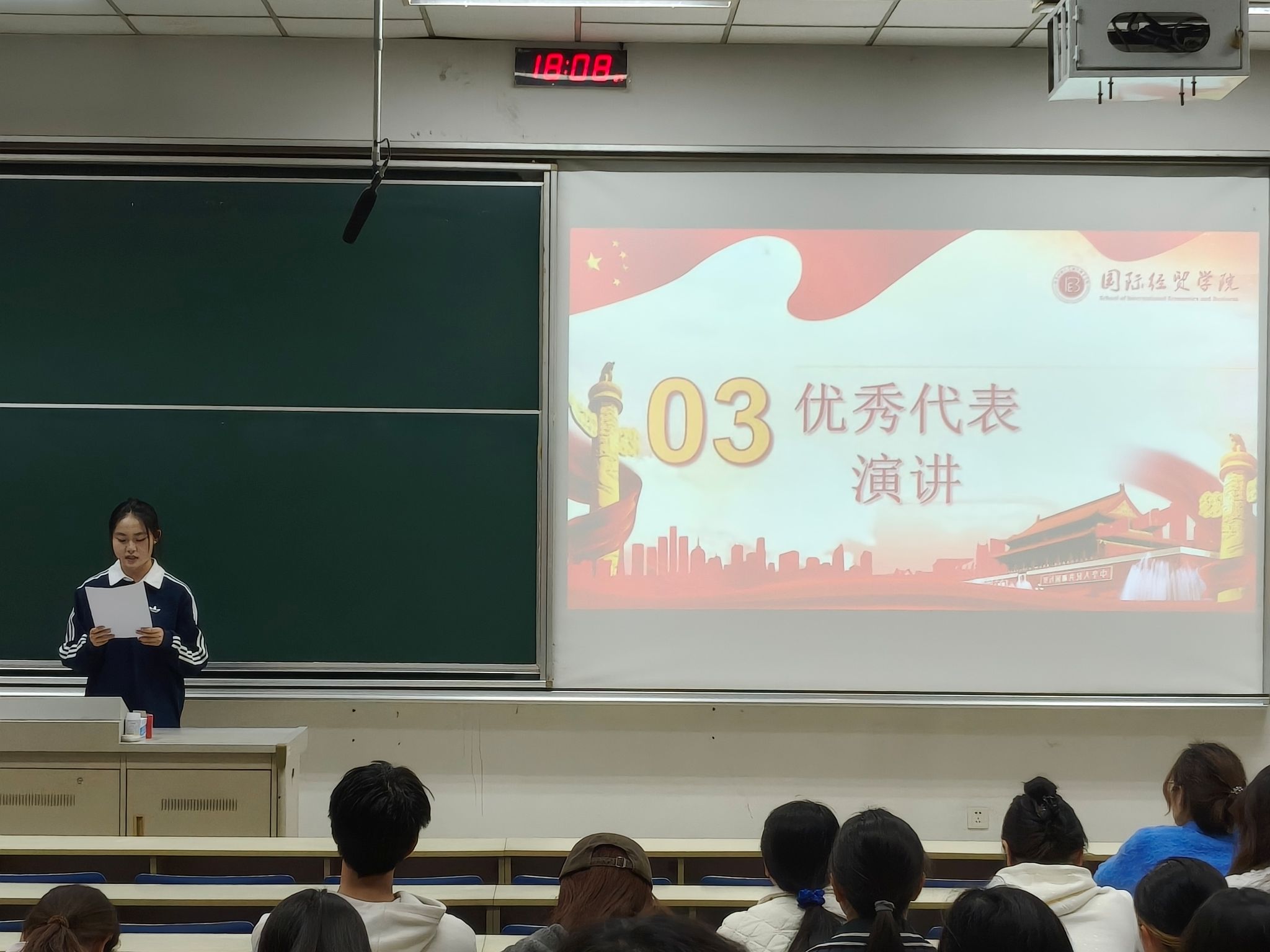 优秀学员代表商务2502贺诗颖上台发表演讲,她结合自身在青马班的学习经历发表了学习感悟。她以“海纳百川,取则行远”为主线,讲述了自己从拓宽眼界、夯实思想根基,到将所学转化为志愿服务与团务工作的实际行动。贺诗颖同学表示,青马班的结业不是学习的终点,而是践行青年使命的新起点,未来将继续以青马学员的标准严格要求自己,努力成长为有理想、敢担当、能吃苦、肯奋斗的新时代青年。