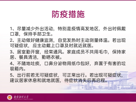 寒假期间,同学们请继续做好个人健康监测,如出现发热、干咳、乏力以及其他呼吸道感染症状,应规范佩戴口罩,及时到附近发热门诊就医,途中尽量避免乘坐公共交通工具,并将情况及时报告所在学校,与学校保持沟通联系,配合学校疫情防控管理工作。