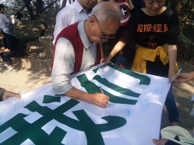九月初九重阳之际,我院学生自发组成义工小分队来到紫金山,与登高的老人们聊健康、话家常,并通过一路捡起游客们随手丢弃的垃圾、“环保百人签名”、“为环保签字画押”“一句话视频”等倡议活动来宣传环保意识。登山的游客们主动在我们带去的倡议横幅上签名表示支持。一位年过8旬的爷爷签名时一直念叨:“这是好事!好事,我们一定得支持!”。十几位小朋友在父母的带领下也在横幅上“画”上自己的名字。很多游客在我们的镜头前,说出了自己“一句话”的环保倡议和承诺。参与活动的学生表示后期将剪辑制作成宣传视频,让更多人参与环保。