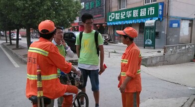 图片二:团队成员向环卫工人问卷调查