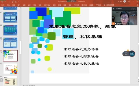 最后,孙老师借相关同学反映的问题,给出了大学生就业的应对策略,第一,要认清当前防疫形势,在“在危机中育新机、于变局中开新局。第二要从能力提升方面入手,提高自己求职择业的能力。第三要找准定位,调整好心态、审清情势变压力为动力,大学生要客观认识到现在的就业形势很严峻,应该变压力为动力,只有正视就业压力我们才会迫使自己积极行动起来,产生求胜的心理和行动。