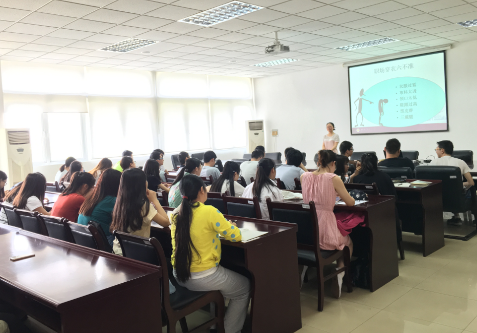 季霞老师旨在促进在校大学生完成学生到职场人的转变,围绕这一中心,展开对就业如何准备这一话题讨论。以最基础的面试为例,时间观念的严谨性、面试面容的整洁性、衣着打扮的合理性,由点及面,由小及大,条理清晰的讲述了职场转变的观念问题。季书记指出,职场着装讲求第一印象,而第一印象建立在仪容仪表上。她提到,着装要分时间、场合、地点及意图,应学会根据不同的企业、同类企业不同的企业文化着装,尤其是在求职时要有针对性。