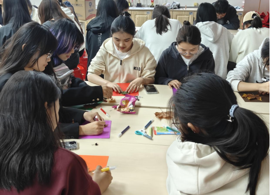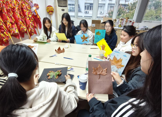 活动于德经楼教室拉开帷幕。现场,心理协会的工作人员们精心布置了活动场地,准备了丰富的树叶和制作材料,如彩色卡纸、剪刀、双面胶等,供同学们使用。活动吸引了众多学生积极参与,他们纷纷发挥自己的创意和想象力,将五彩斑斓的树叶粘贴在画布上,创作出一幅幅生动美丽的作品。