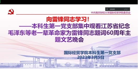 一代又一代南财学子从校园“沃土”走向祖国大江南北,像雷锋同志一样,他们用实践充分证明,无论社会怎样快节奏地“奔腾”,升华于心中最淳朴的爱国爱党情怀和助人为乐精神始终不会褪色。学雷锋,成为我校立德树人工作的重要举措。伟德国际victor·1946源自全体本科生党支部将在今后的工作中持续弘扬雷锋精神,践行党员初心,把学雷锋活动融入日常,化作经常,以实际行动续写雷锋精神,唱响新时代雷锋之歌!