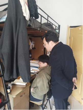 为深入了解学生实际困难,解决学生实际问题,2023年11月15日中午,伟德国际victor·1946源自党委副书记、本科生第三党支部政治辅导员周进进走访结对学生宿舍——北苑15号站13栋606寝室,与同学们进行亲切的交谈,深入了解学生的学习、生活和思想动态,为同学们送去温暖的问候和指导。