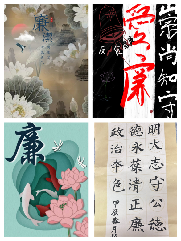 同学们将廉洁文化融入书画视频作品,以图绘廉,以文述廉,用优美的文字、坚定的笔触传递清廉信念,深刻诠释了对廉洁内涵的理解和认识,以实际行动弘扬廉洁文化,彰显了当代青年党员的责任和担当,展现出“敬廉崇洁”的坚定决心和信心。学院专门组建评审团,从艺术表现力、创意内容、传播价值等多维度对作品进行评审,评出优秀作品一等奖、二等奖、三等奖若干名,对部分获选作品进行展览,为广大师生提供学习典范。