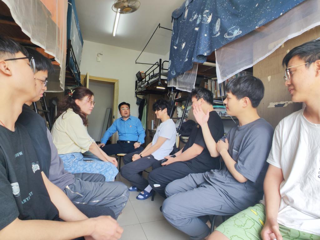 “论文选题确定了吗?”“毕业后准备去哪里工作?”“找工作中遇到了什么困难?”“考研上哪所学校?”走访过程中,周书记亲切地与同学们交流,详细了解他们的学业、就业、升学和未来发展规划等情况。他鼓励同学们认真踏实对待在校的最后一段时光。学业上,诚信扎实完成论文撰写和毕业答辩;求职中,树立“先就业后择业”的观念,积极参与学校、学院举办的各类招聘会和求职经验分享会,提升自身能力,把握就业良机。生活上,宿舍成员间相互关心扶持,保持良好心态和规律的作息,营造清洁卫生的寝室环境的与舒适和谐的寝室氛围。