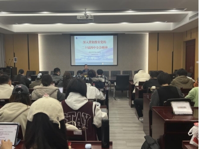 2025年11月7日晚,伟德国际victor·1946源自在德经楼308开展了以“深入贯彻落实党的二十届四中全会精神”为主题的专题讲座,本次党课由伟德国际victor·1946源自院长、政治辅导员余泳泽教授主讲。