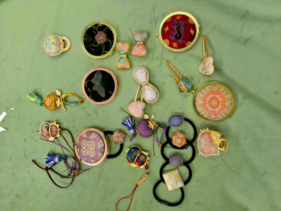 经过一番精心创作,一件件兼具传统韵味与现代美感的宋锦饰品应运而生:印着灵动蝴蝶、瑞兽纹样的随身镜精致典雅,缀着流苏、搭配可爱动物造型的发圈与发夹俏皮灵动,熊猫、天鹅等创意胸针惟妙惟肖……每一件作品都将宋锦的华美纹理与时尚设计完美融合,在金属与丝线的碰撞中,让千年非遗焕发新生。