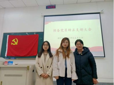 支部大会严格按照党员转正程序召开。支部大会开始后,先由每一位预备党员宣读自己的转正申请书,并对自己过去一年的学习经历、思想情况、实践收获等做了汇报,充分表达自己转正的意愿。随后,其入党介绍人以及与会党员充分发表意见,肯定长处,提出不足,并表达了是否同意其按期转正的意愿。随后,张老师组织支部正式党员进行投票表决并宣读决议。经与会正式党员无记名投票表决,大会决定,同意张禧莹、江昕玥按期转为中共正式党员。