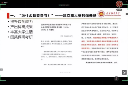 首先,李老师深刻解答了为什么要参与“互联网+”大赛这一问题,厘清了“互联网+”大赛与本科生的强关联性,激发了同学们参与比赛的热情。紧接着,李老师就组建团队方面作出了详细的介绍。项目成员的总体配置要做到专业交叉、各有所长。确切的定位能够发挥出同学们的优势。随后,老师根据大赛时间规划,从训练与过程收获方面详述了备赛过程中需要关注的内容。李老师强调,比赛的准备是一个长期的过程,需要的是实干,领域精进、成果产出都是同学们参赛的收获。贸经2102班的戴媛媛在讲座结束后说道:“老师对于前期的选题与组队问题的解答以及比赛过程中的各项过程的剖析非常细致,李冠艺老师的讲座让我们都受益匪浅!”