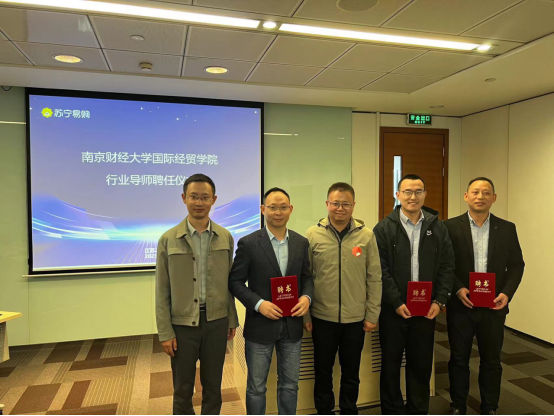 苏宁易购集团人才发展中心总监薛潇冬、人才发展中心培训总监李运华、苏宁易购南京大区副总经理李华等与南财的老师和同学们围绕“苏宁易家”项目的消费体验创新方案进行了研讨,苏宁的各位“新零售”专家对我院《新零售消费体验创新》课程的建设质量和同学们汇报的策划方案给出了高度赞扬。